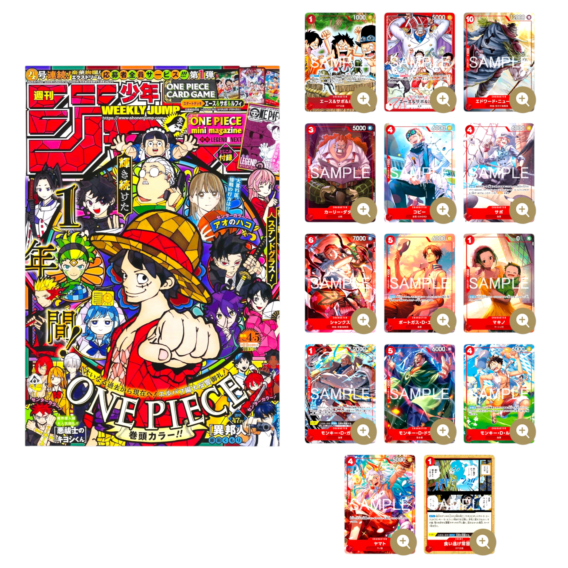 Discover the Weekly Shonen JUMP with the exclusive original Promo deck of Luffy, Ace, Sabo, special marine edition !